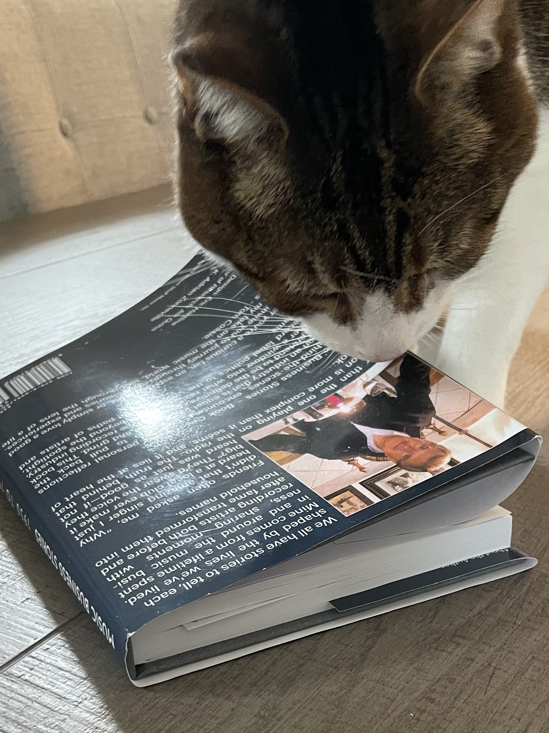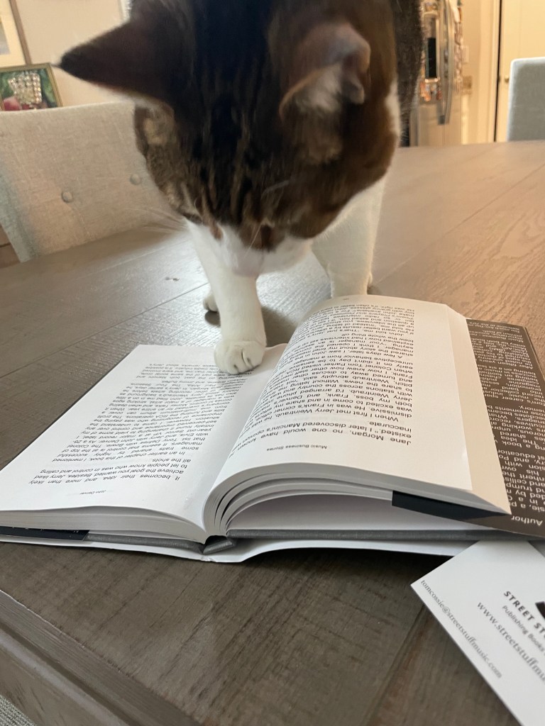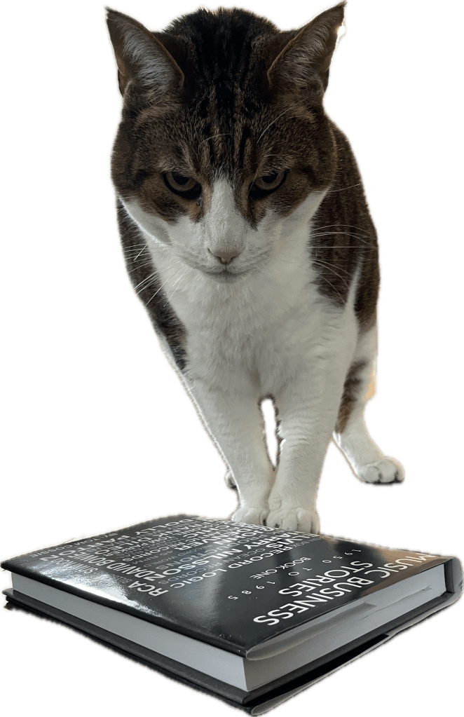 Beamer Baclawski is a rock ‘n ‘roller, a cool cat who appreciates the business end of things. His human companion, Nancy, is a rock ‘n ‘roller, too, although she appreciates rock ‘n ‘roll’s danceability. Curious, however, about the history behind the music she loves, she picked up Tom Cossie’s Music Business Stories.