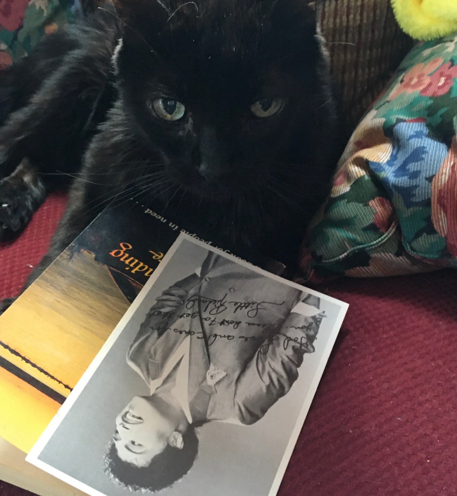 When I met Little Richard, however, he had traded the Chitlin’ Circuit for Jesus. He was in New Orleans to promote Finding Peace Within, A Book for People in Need, which comes with a print of Little Richard inscribed with, “God loves and cares for you. Please don’t forget that.” I won’t. Nor will I forget that the big Little Richard signed copies of the book for Brenda and me. As you can see, Ron was quite impressed with the signed copy.